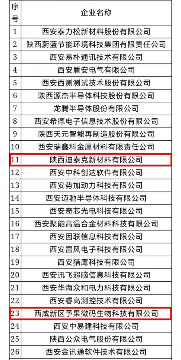 近日,西安市科学技术局公示了2022年度西安市硬科技企业之星入选企业名单,西咸新区秦汉新城辖区企业,陕西迪泰克新材料有限公司、西咸新区予果微码生物科技有限公司名列其中。