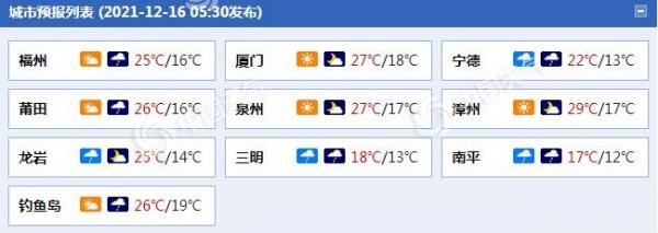 今天(12月16日),福建多地阴雨在线,普遍以小雨为主,三明、宁德局地或达中雨量级。不过气温方面却没有受到雨水太多的“打压”,今日福建各地依旧“升温模式”全开,南部沿海最高气温或达28℃以上。