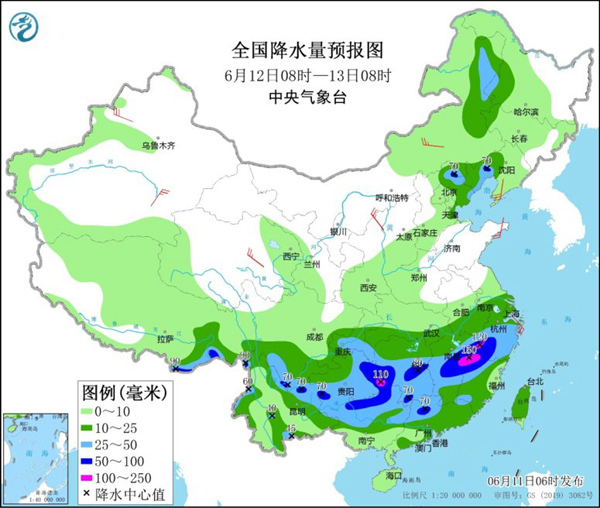 今天(6月11日),江南、华南等地仍有较强降雨,部分地区有暴雨。明天起至14日,南方新一轮强降雨无缝衔接,湖南、江西、福建、广西、广东等地还将有大到暴雨,局地有大暴雨。同时,华北、东北等地多阵雨或雷雨,需注意防范。