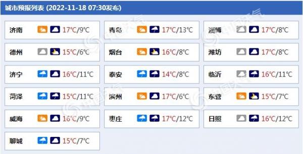 今天(11月18日),山东各地云量较多,部分地区小雨淅沥,升温按下“暂停键”,最高气温将在15℃左右,最低气温普遍仅有个位数,公众需做好保暖工作,谨防感冒。