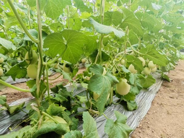 铜川市印台区广阳镇水利村甜瓜种植大棚内,甜瓜长势喜人。