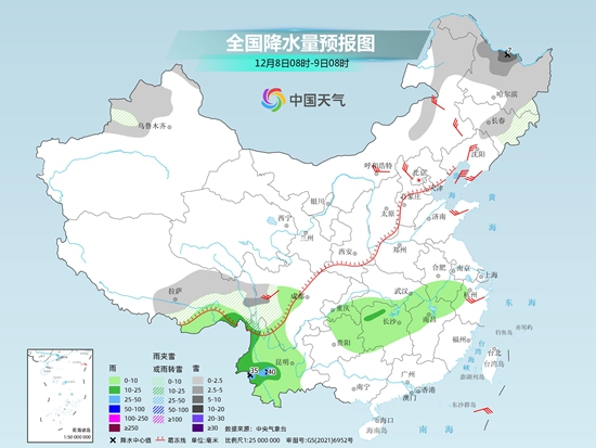 降水方面,今天,冷空气带来的降雪范围较小,主要将集中在东北北部、内蒙古东北部等地。具体来看,内蒙古东北部、黑龙江、吉林中东部、辽宁北部、新疆北疆、西藏东部、川西高原西部等地部分地区有小到中雪或雨夹雪,其中,黑龙江北部局地有大雪。西藏南部、四川中西部、云南大部、重庆东南部、贵州东部和北部、湖南中北部、江西北部、湖北南部、安徽南部、浙江西部等地部分地区有小到中雨,其中云南西部局地有大雨。