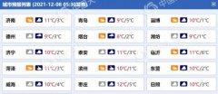 未来三天(12月8日至10日),山东全省天气阴沉,部分地区有小雨现身,早晚天气寒冷,尤其是夜间,部分地区的最低气温只有1℃上下…[详细]