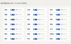 今明两天(10月27日至28日),浙江南部和沿海地区依然小雨在线,其它大部地区以阴天或多云天气为主。此外,沿海地区风也比较大,…[详细]