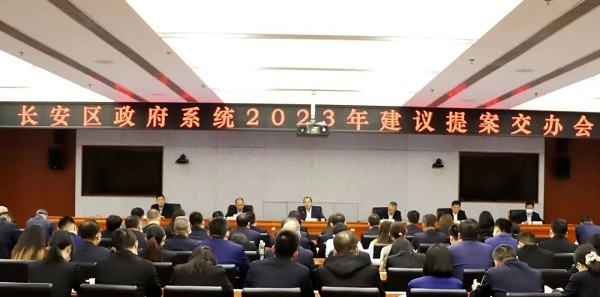 3月9日,长安区召开政府系统2023年建议提案交办会,总结去年建议提案办理工作,表彰先进单位和个人,对区十九届人大二次会议代表建议和区政协十五届二次会议委员提案办理工作进行扎实部署。
